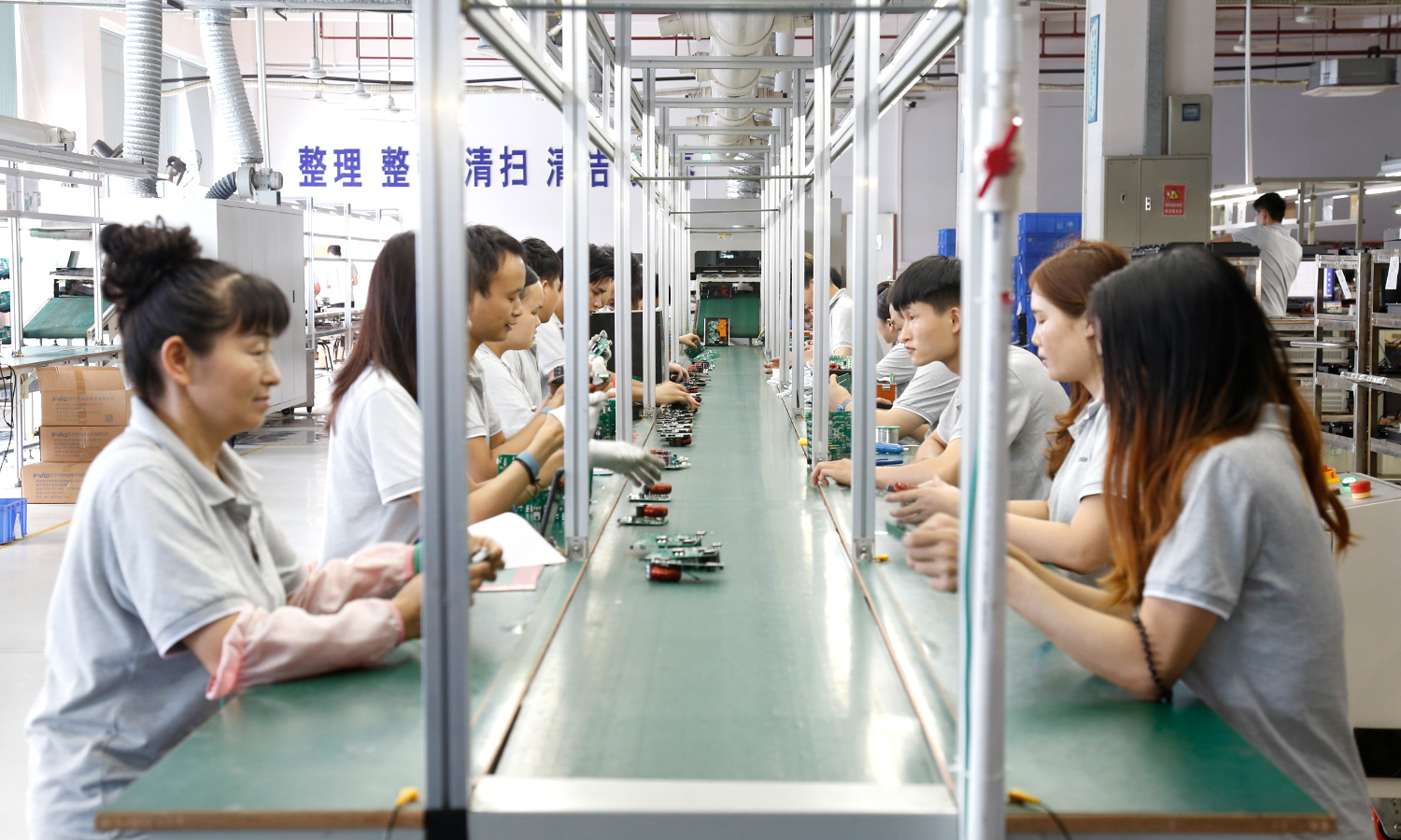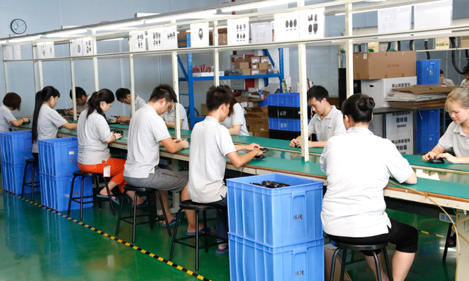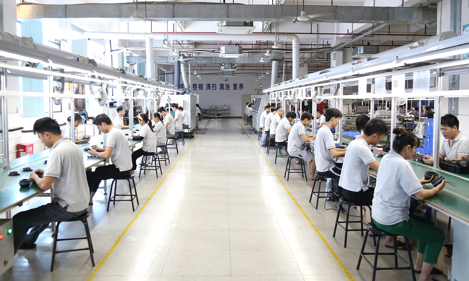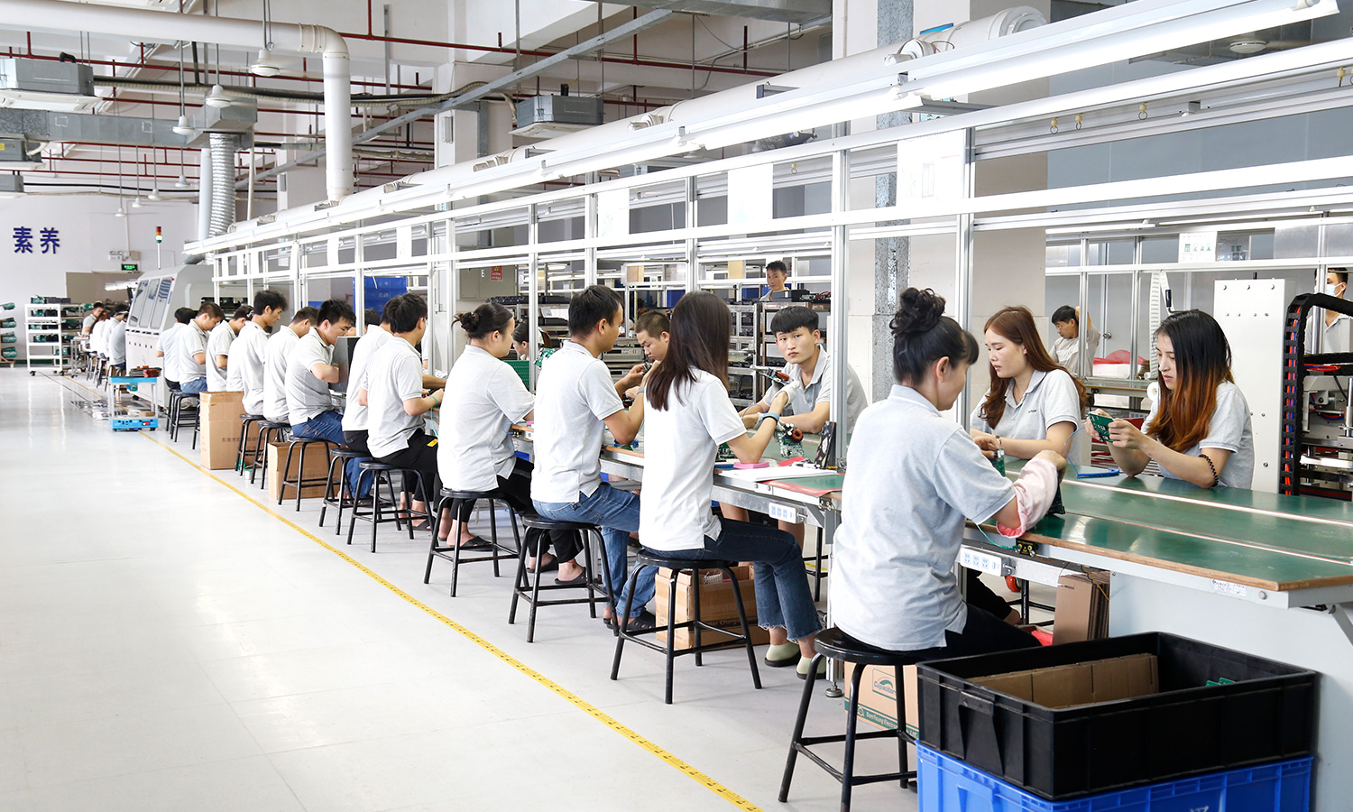 现有组装流水线2条现代化的生产线(可随时扩成4条),对太阳能控制器,逆变器,储能、工业降噪耳机、等工业产品组装经验丰富 ;能够生产绝大部分的数码电子产品,极强的综合生产能力,日产能达到1万PCS以上。防静电PVC空调车间,配备有老化房,测试房,成品测试隔音隔离房等,设备先进、完善,可进行各种产品镭雕、组装、老化、测试、包装等生产。